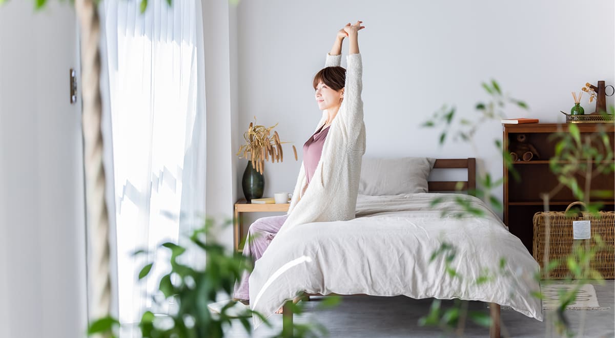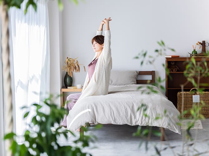ベッドのみではスペースに余裕がある場合、一人掛けのソファや、パーソナルチェアを置いてリラックススペースを作ることをおすすめします。就寝前に音楽を聴いたり、本を読んだりしてリラックスすることで、自然な眠気を誘うことも期待できるでしょう。座り心地が良く、リラックスしやすいと感じるソファがおすすめです。